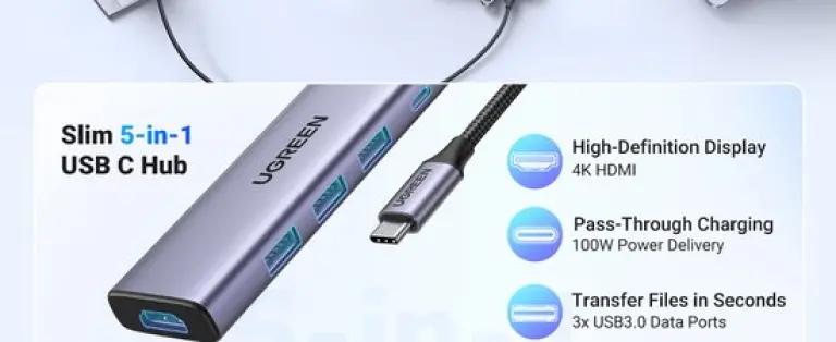 Met de UGREEN 15596 USB-C Hub haal je een krachtige en veelzijdige accessoire in huis die je werk en entertainment een stuk makkelijker maakt. Deze multifunctionele hub ondersteunt een 100W voedingsadapter, heeft een 4K 30Hz HDMI-poort en maar liefst 3 USB A-poorten. Dankzij de snelle USB 3.2 Gen 1 verbinding tot 5 Gbps kun je moeiteloos meerdere apparaten aansluiten en snel bestanden overzetten.
