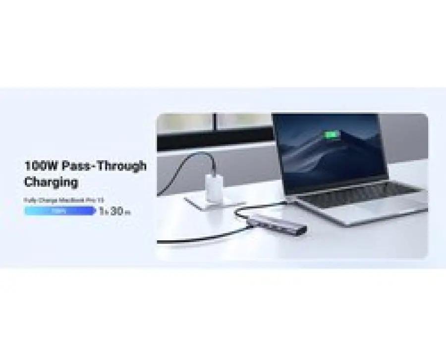 Stream je favoriete films of maak indruk met presentaties via de 4K HDMI-uitgang van deze hub. Geniet van hoge resolutie beelden op een externe monitor of tv met een vloeiende weergave van 30Hz. Dit maakt de hub perfect voor thuis, op kantoor of onderweg.