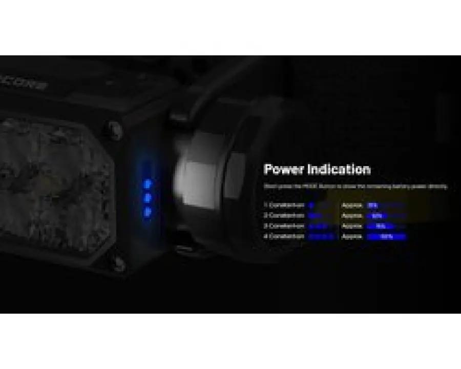 De hoofdlamp werkt op een krachtige 18650 Li-Ion batterij (4000 mAh) die je via USB-C in slechts 2 uur volledig oplaadt. Dankzij de ingebouwde LED stroomindicator weet je altijd hoeveel batterijvermogen er nog over is. Met brandtijden tot 31 uur op medium licht en speciale functies zoals een Lockout Mode en ATR temperatuurregeling, ben je verzekerd van een veilige en langdurige gebruikservaring.