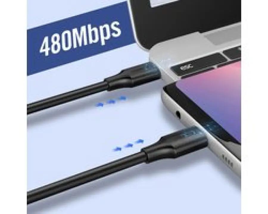 De kabel heeft aan beide uiteinden een USB-C male aansluiting, wat betekent dat hij geschikt is voor moderne apparaten die USB-C ondersteunen. Dankzij de lengte van 2 meter heb je voldoende bewegingsvrijheid, of je nu thuis bent, op kantoor of onderweg. De kabel is eenvoudig aan te sluiten en zorgt voor een stabiele verbinding.