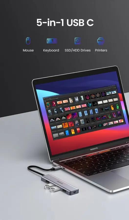 De UGREEN USB-C hub is speciaal ontworpen voor apparaten met een USB-C aansluiting zoals MacBook, iMac en diverse Android-toestellen. Met deze hub breid je eenvoudig het aantal beschikbare USB-poorten uit, zodat je meerdere apparaten tegelijk kunt aansluiten, zoals een USB-stick, toetsenbord of muis.