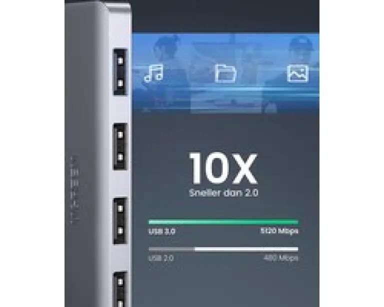 De UGREEN USB-C hub is speciaal ontworpen voor apparaten met een USB-C aansluiting zoals MacBook, iMac en diverse Android-toestellen. Met deze hub breid je eenvoudig het aantal beschikbare USB-poorten uit, zodat je meerdere apparaten tegelijk kunt aansluiten, zoals een USB-stick, toetsenbord of muis.