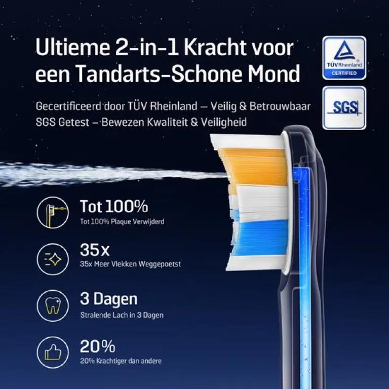 | Meegeleverde Tandenborstel Accessoires | Opzetborstelkapje(s), USB-lader, Oplaadstation, 2 Opzetborstels |