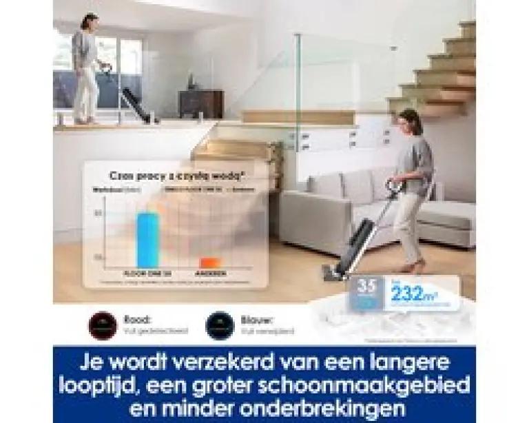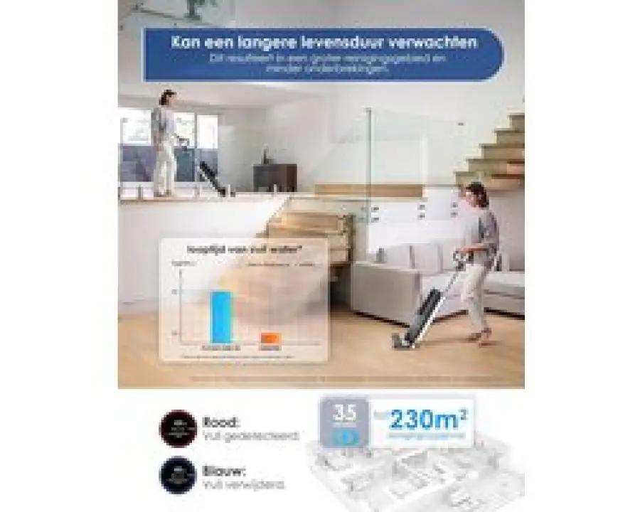 Met de Tineco Floor One S5 Extreme hoef je niet langer te kiezen tussen stofzuigen en dweilen. Dit slimme apparaat combineert beide functies in één soepele beweging, zodat je harde vloeren binnen enkele minuten droog en streeploos zijn. Zo halveer je de tijd die je normaal aan schoonmaken besteedt en geniet je sneller van een frisse, schone vloer.