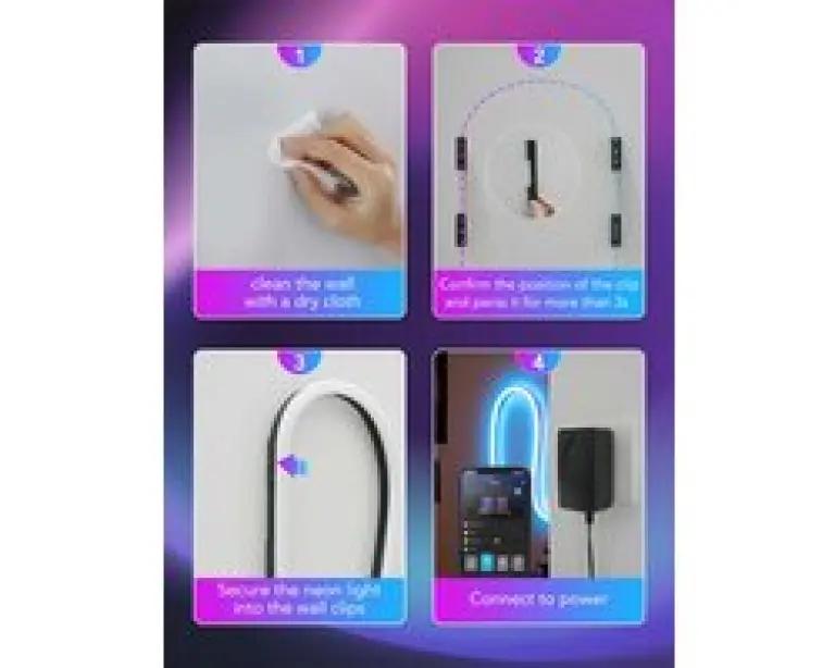 Deze set van 5 clips helpt je met het ontwerpen van delicate neon rope light patronen of extra vormen. Let op: deze clips zijn niet geschikt voor de modellen H61A0, H61A1, H61A2 en H61A5. Gebruik ze alleen met de juiste Govee neon rope lights voor het beste resultaat.