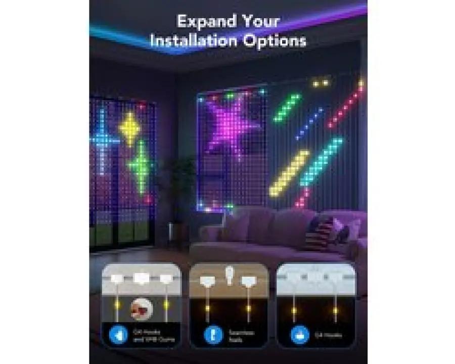 Met de DIY-modus kun je zelf jouw persoonlijke lichtshow samenstellen en eindeloos variΓ«ren met lichteffecten. Bedien de gordijnlampen eenvoudig via de app, de control box of met spraakbesturing via Alexa en Google Assistant. Zo heb je altijd volledige controle, waar je ook bent. De lampen zijn compatibel met meerdere apparaten en ondersteunen het smart home protocol Bluetooth, waardoor ze naadloos in jouw slimme huis passen.