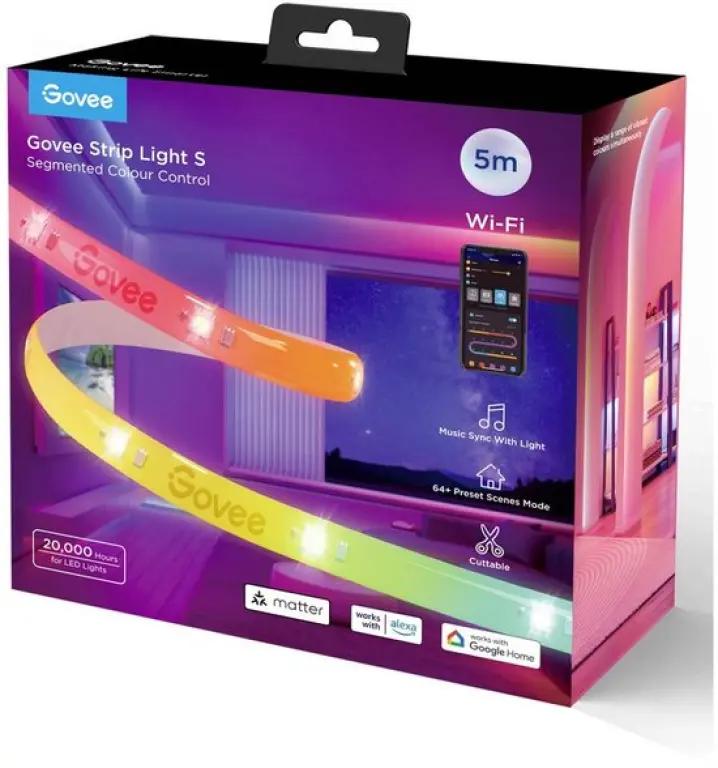Verpakkingsinhoud | Govee Strip Light S Segmented Colour Control (5m), netstroomadapter. |