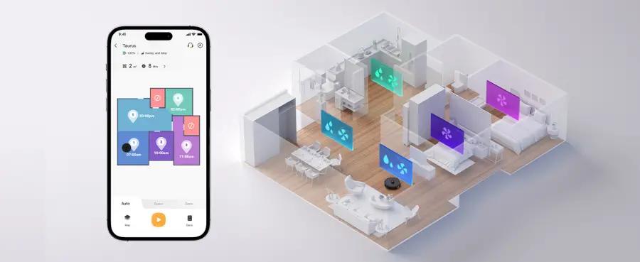 De RV1 Pro Max gebruikt een LIDAR sensor die 6 keer per seconde ronddraait en 2.016 punten meet om een uiterst nauwkeurige kaart van je woning te maken. Met de Imou Life app heb je volledige controle: plan schoonmaaktijden, stel no-go zones in en wissel makkelijk tussen de 3 opgeslagen kaarten voor verschillende verdiepingen. Zo past de robot zich perfect aan jouw huis en wensen aan.