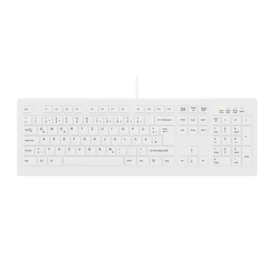 Dit toetsenbord is wit van kleur en heeft een monochromatische oppervlakte die eenvoudig schoon te maken is, wat perfect aansluit bij de strenge hygiëne-eisen in medische omgevingen. Dankzij de IP68-classificatie is het toetsenbord stof- en waterbestendig, waardoor het langdurig gebruikt kan worden zonder kwaliteitsverlies. Het is compatibel met Windows, Mac en Linux systemen, waardoor je het breed kunt inzetten.
