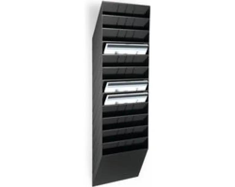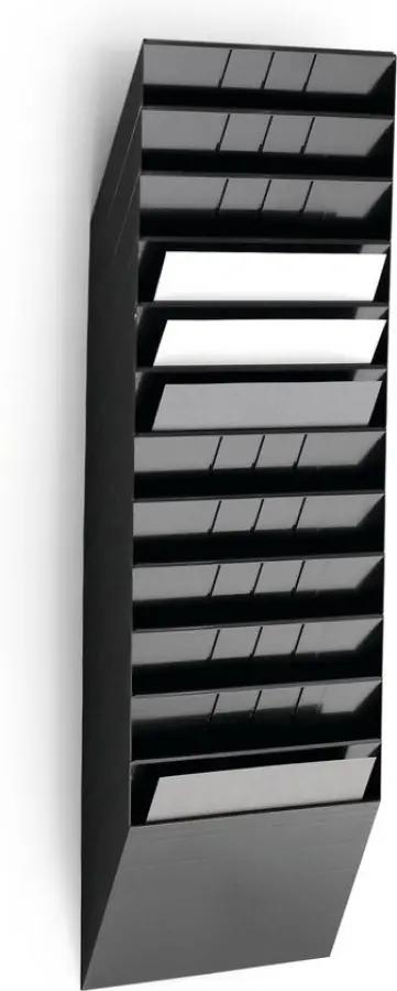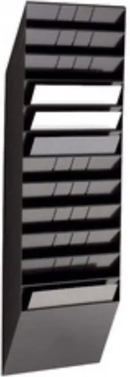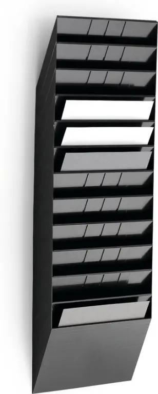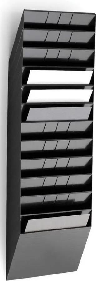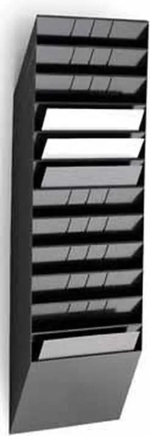 De Durable FLEXIBOXX tijdschrifthouder is ideaal voor wie zijn tijdschriften netjes wil ordenen. Met 12 horizontale schappen biedt deze houder voldoende ruimte om verschillende tijdschriften of documenten overzichtelijk te bewaren. De schappen zijn geschikt voor liggend A4 formaat, wat zorgt voor een nette presentatie en makkelijke toegang.
