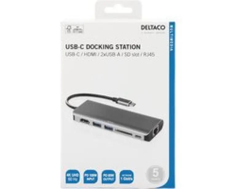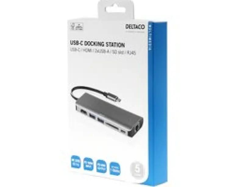 | Verpakkingsinhoud | Deltaco USBC-HDMI24 Docking Station - USB-C - HDMI 4K 60Hz - RJ45 - 2 x USB 3.1 - USB-C 100W - SD kaart - Space Grey |