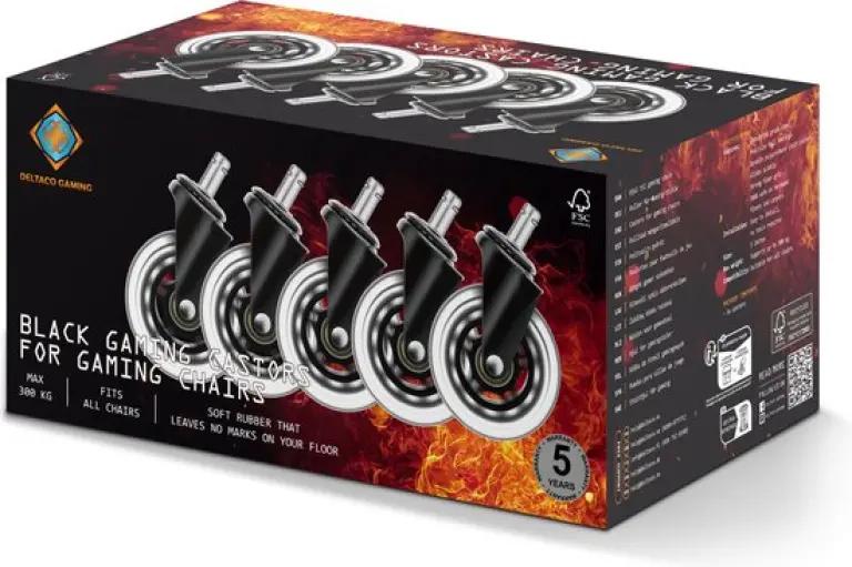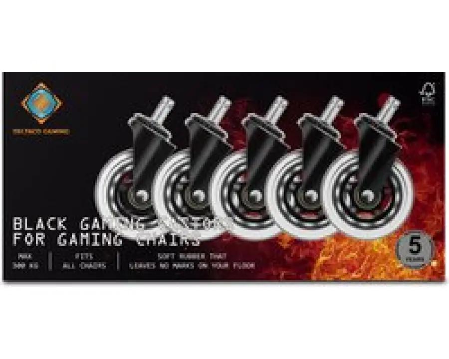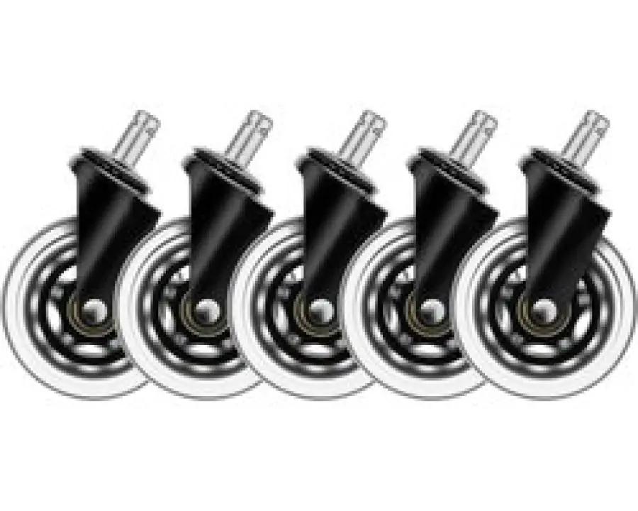 Deze set bevat 5 stuks wielen en ondersteunt tot maar liefst 300 kg. Dat betekent dat je stoel stabiel blijft, zelfs tijdens intensieve game- of werkuren. De zware constructie en het rubber zorgen voor ultieme grip en comfort, zonder dat je bang hoeft te zijn voor slijtage of beschadiging van je vloer.