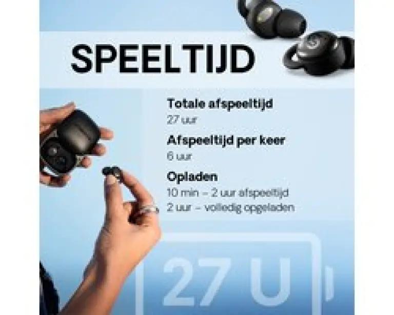 Met een totale batterijduur van maar liefst 27 uur (6 uur per oplaadbeurt plus 21 uur via de compacte oplaadcase) ben je verzekerd van langdurig luisterplezier zonder vaak op te laden. Dankzij Bluetooth 5.4 met multipoint kun je de oordopjes moeiteloos verbinden met twee apparaten tegelijk, zoals je smartphone en tablet, zodat je gemakkelijk wisselt tussen muziek luisteren en bellen. De universele bediening via de oordopjes maakt het beantwoorden en ophangen van oproepen super eenvoudig.