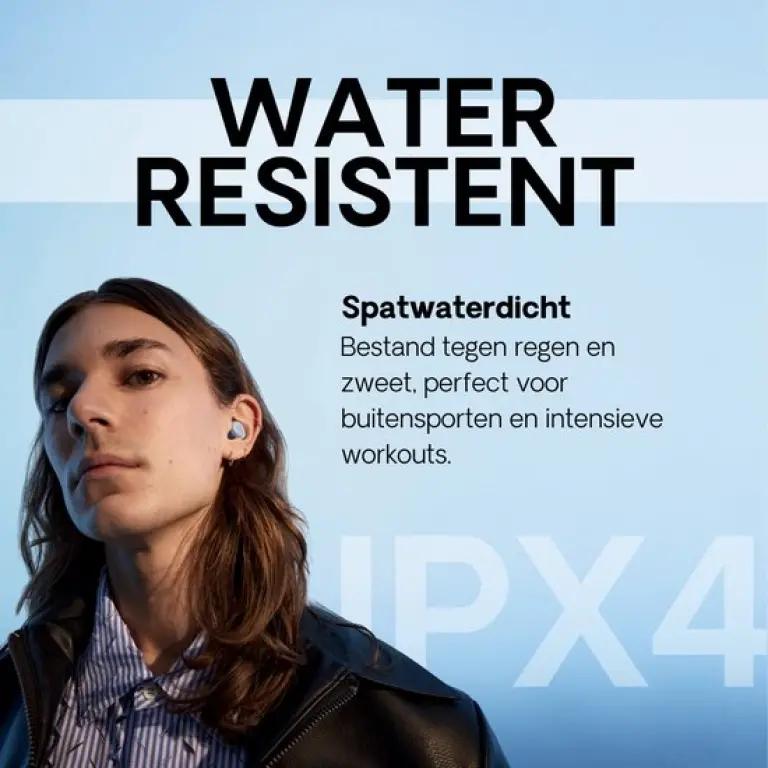 Hoewel de Porto oordopjes geen actieve noise cancelling hebben, verminderen ze omgevingsgeluiden tot wel 20 dB dankzij de geoptimaliseerde pasvorm en gesloten klankkast. Dit betekent dat je minder last hebt van storende achtergrondgeluiden, of je nu thuis bent, onderweg of aan het sporten. De IPX4-certificering maakt ze bestand tegen zweet en lichte regen, waardoor ze perfect zijn voor dagelijks gebruik en sportactiviteiten.