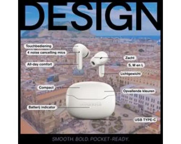 Het zachte, pebble-inspired ontwerp zit heerlijk in je oor en past gemakkelijk in je zak. Met een IPX4 waterbestendigheid trotseer je zweet en lichte regen zonder zorgen. Inclusief siliconen oortips in drie maten voor een perfecte pasvorm, zodat je de oordopjes de hele dag comfortabel draagt.