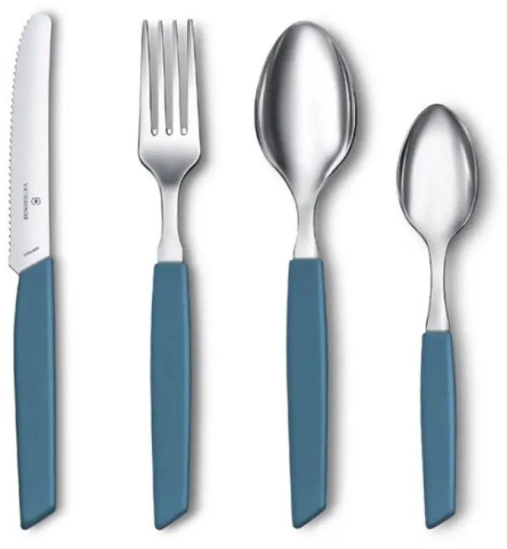 Met de 24-delige Swiss Modern bestekset van Victorinox breng je een zachte, hedendaagse kleur naar je keuken en eettafel. De set in pastelblauw straalt moderne elegantie uit en bestaat uit 6 steakmessen, 6 tafelvorken, 6 eetlepels en 6 theelepels. Perfect voor zes personen die samen in stijl willen genieten.