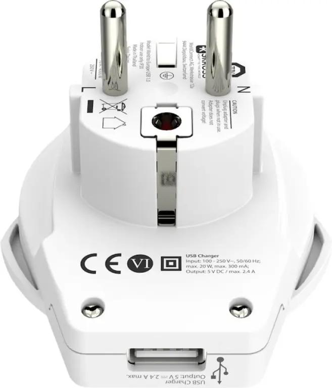 Deze adapter ondersteunt zowel 2-polige als 3-polige stekkers, zowel geaard als ongeaard. Hierdoor kun je eenvoudig apparaten uit diverse landen gebruiken. Daarnaast beschikt de adapter over een geïntegreerde USB Type-A poort waarmee je USB-apparaten tegelijk kunt opladen. Zo hoef je niet meerdere adapters mee te nemen, wat ruimte en gewicht bespaart tijdens het reizen.