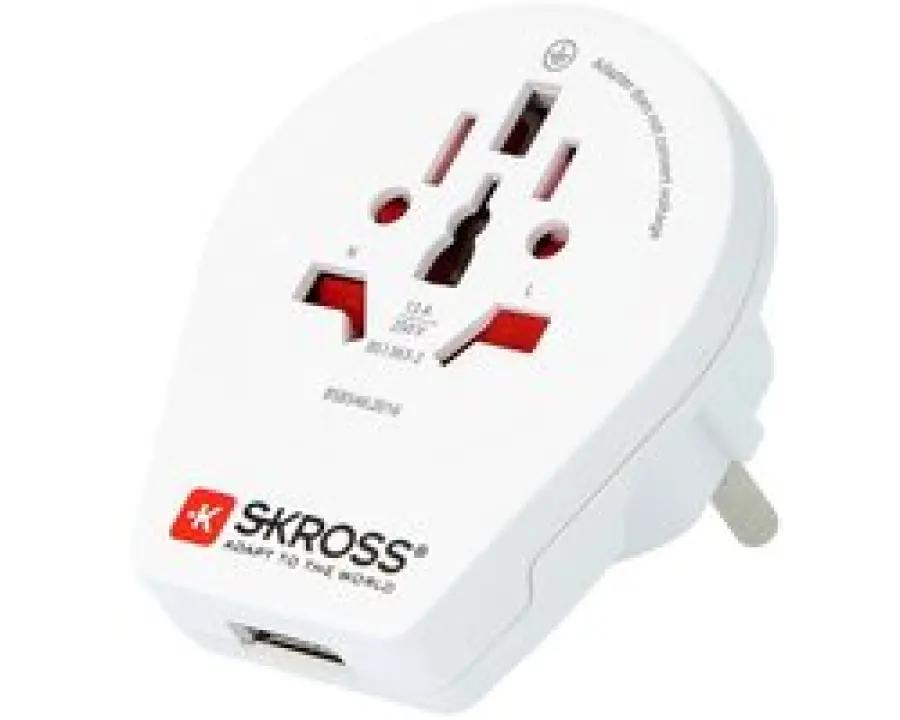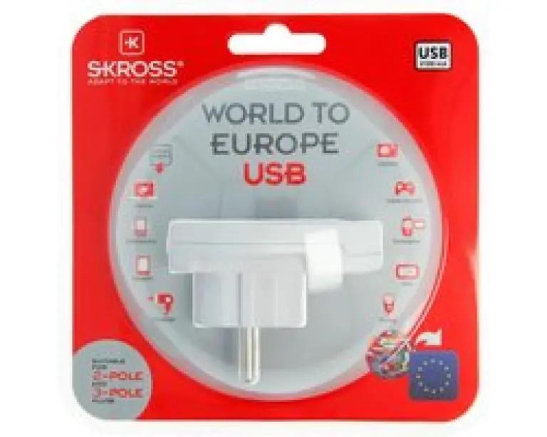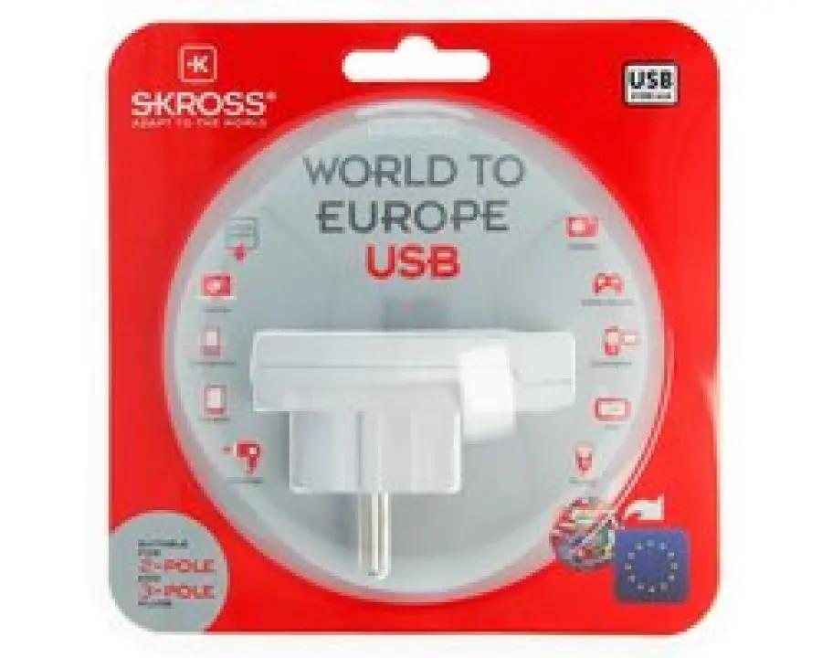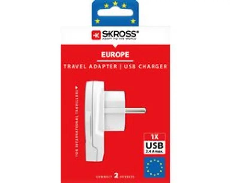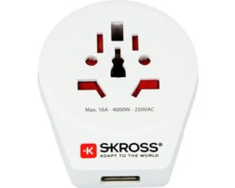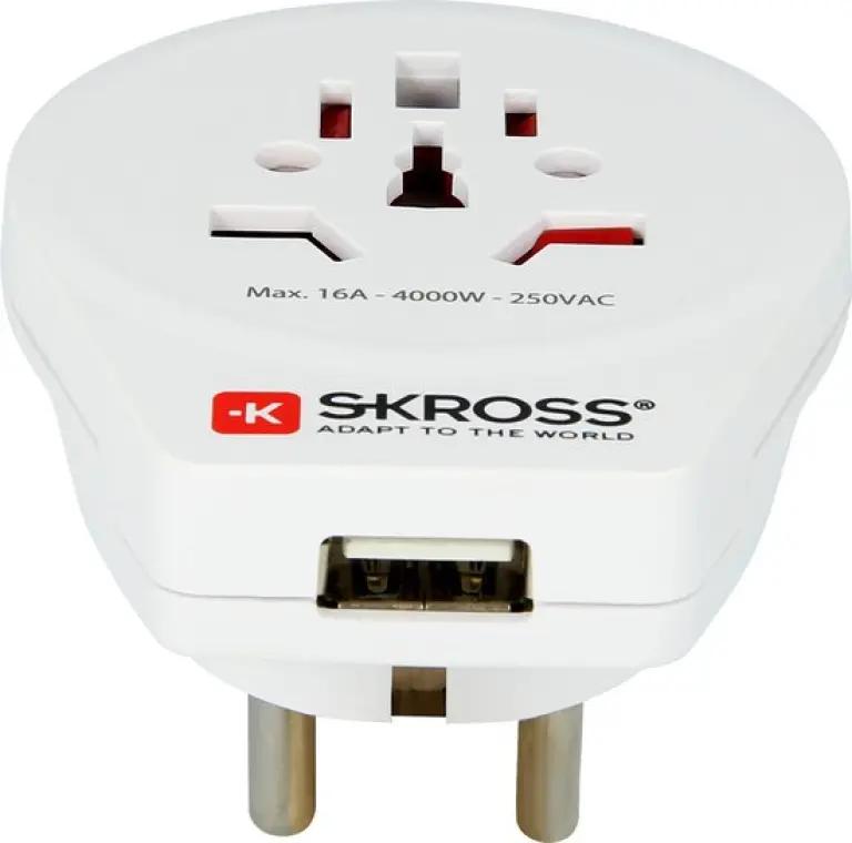 Skross 1.500266 - Netstekker adapter - Universeel - Type F - Wit - USB