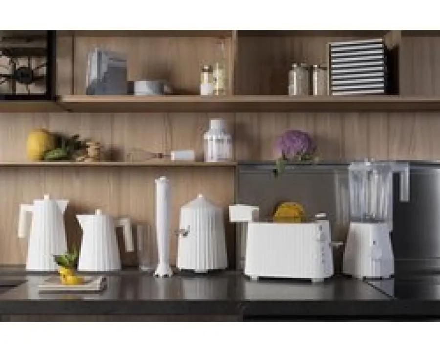De Alessi Plissé Waterkoker met een inhoud van 1 liter is ontworpen door de bekende Italiaanse designer Michele De Lucchi. Het moderne, witte design past perfect in een eigentijdse keuken en voegt een verfijnde touch toe aan elke ruimte. Dankzij het compacte formaat van 21 cm hoog en 16 cm breed is deze waterkoker praktisch en stijlvol tegelijk.
