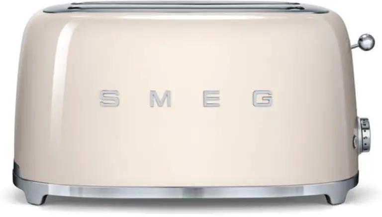 De Smeg broodrooster TSF02CREU combineert een prachtig retro design met moderne functionaliteit. Deze broodrooster is uitgevoerd in een warme crème kleur en past perfect in elke keuken dankzij de jaren '50 stijl lijn van Smeg. Met 4 extra brede sleuven rooster je eenvoudig 4 sneden brood tegelijkertijd, ideaal voor een snel ontbijt of lunch.