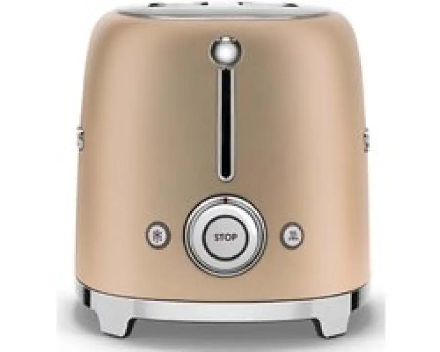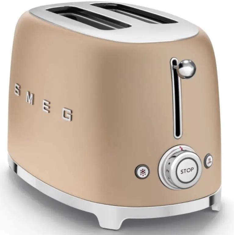 De Smeg TSF01CHMEU broodrooster in mat champagne is een echte blikvanger in je keuken. Dit model hoort bij de iconische jaren '50 stijl lijn van Smeg en combineert een retro look met moderne technologie. Dankzij het slanke design en de hoogwaardige kunststof behuizing past deze broodrooster perfect in elke keukenstijl.