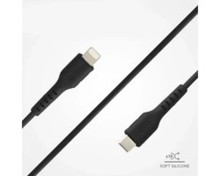 De kabel heeft een rechte mannelijke USB-C en Lightning connector, waardoor hij gemakkelijk aansluit en goed past in je apparaten zonder gedoe. De zwarte kleur geeft een strakke en tijdloze uitstraling die bij elke stijl past.