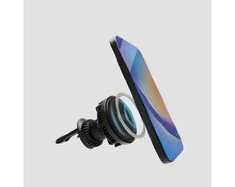 De houder wordt eenvoudig bevestigd aan het ventilatierooster van je auto, wat zorgt voor een stevige en stabiele plaatsing. Hierdoor neemt de houder geen extra ruimte in beslag en blijft je telefoon goed bereikbaar. Het minimalistische ontwerp en de matte zwarte kleur passen mooi in elk auto-interieur en zorgen voor een elegante uitstraling.
