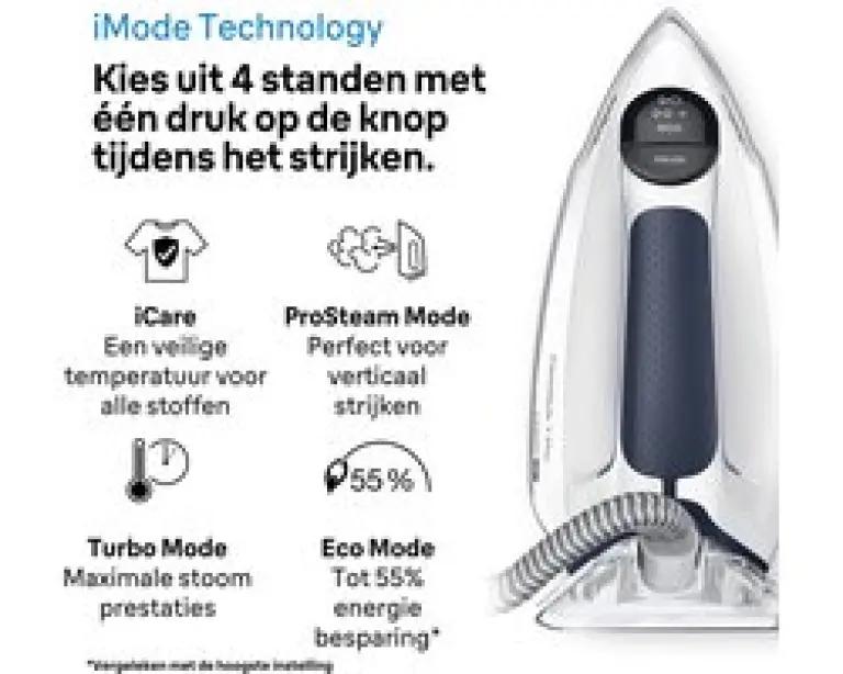 De iCare-technologie zorgt voor een veilige temperatuur die geschikt is voor alle stoffen. Zo bescherm je je kleding en strijk je eenvoudiger en sneller. De digitale druppelstop voorkomt watervlekken en lekkage, ook bij lage temperaturen, zodat je strijkgoed er altijd perfect uitziet.