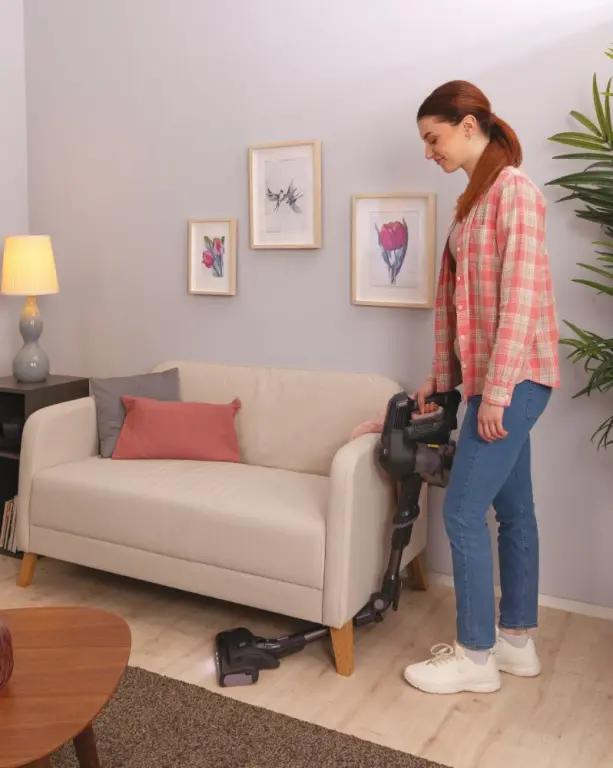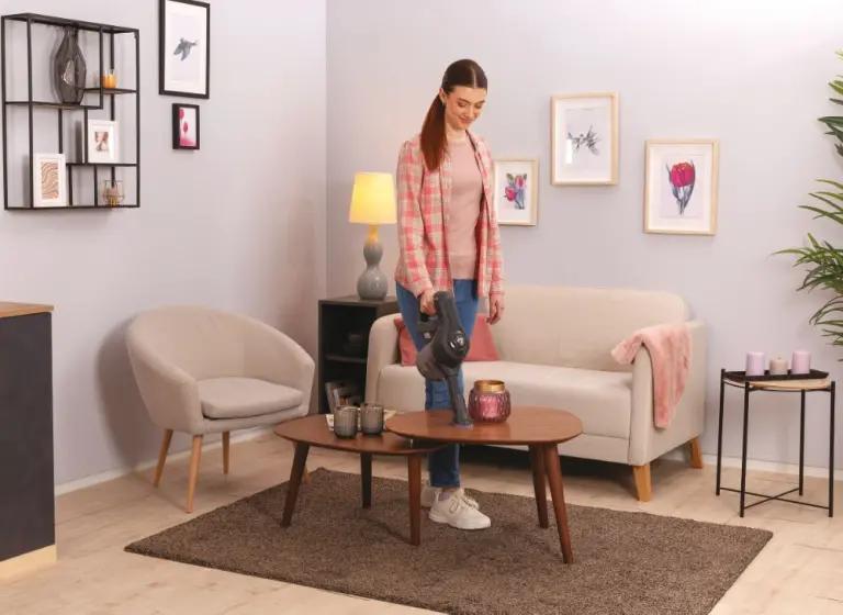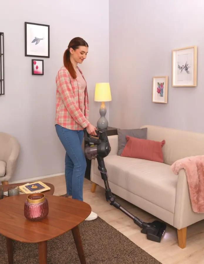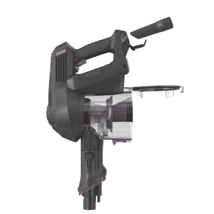 Deze steelstofzuiger werkt op een krachtige lithium-ion batterij met een voltage van 22 V. De accu biedt een gebruiksduur tot 30 minuten, ideaal voor het snel schoonmaken van je hele huis zonder dat je telkens hoeft te stoppen om op te laden. Wanneer de batterij bijna leeg is, geeft de LED-indicator dit duidelijk aan, zodat je nooit voor verrassingen komt te staan. De oplaadtijd bedraagt ongeveer 12 uur, en de batterij is eenvoudig te verwijderen en te vervangen.