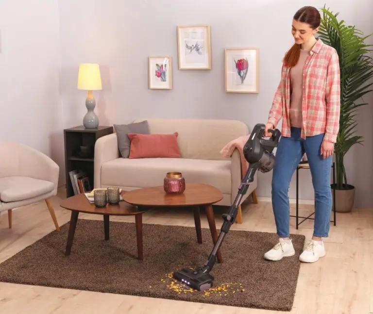 De Hoover HF103X is uitgerust met rubberen wielen die het apparaat soepel en stil laten rollen over verschillende vloertypen. De stofzuiger heeft een ingebouwde LED-verlichting die het schoonmaken in donkere hoekjes vergemakkelijkt. Met de turbo knop schakel je eenvoudig een krachtigere zuigstand in voor hardnekkig vuil. De steelstofzuiger is licht van gewicht (2,4 kg), waardoor je gemakkelijk manoeuvreert en zelfs lastig bereikbare plekken schoonmaakt. Ook is er een afneembare kruimeldief en een spleetzuigmond meegeleverd voor extra precisie.