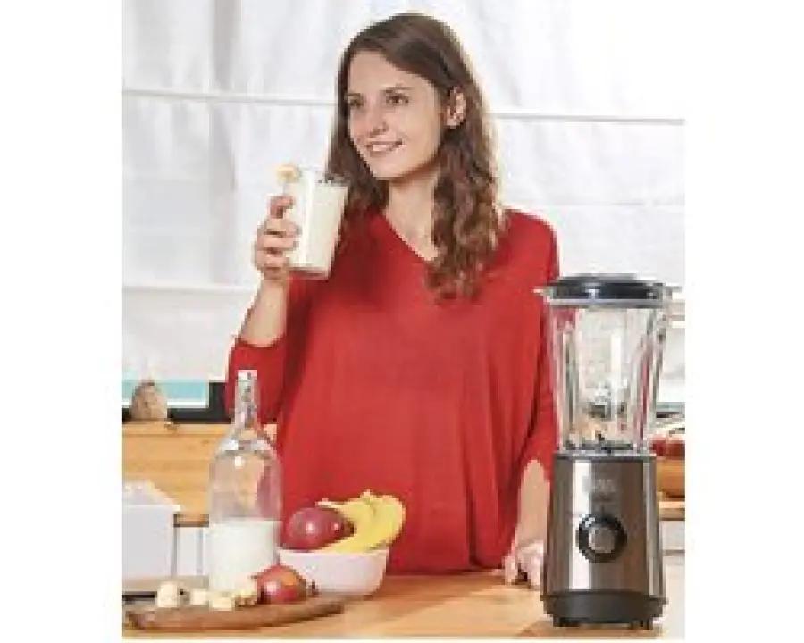 De kan en verwijderbare messen zijn vaatwasserbestendig, wat het schoonmaken een fluitje van een cent maakt. Dankzij het ergonomische ontwerp en de antislipvoet staat de blender stevig op het aanrecht, wat zorgt voor extra veiligheid en gebruiksgemak. Bovendien is het apparaat BPA-vrij, zodat je met een gerust hart gezonde drankjes maakt.