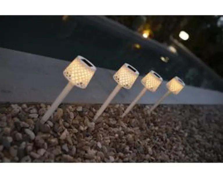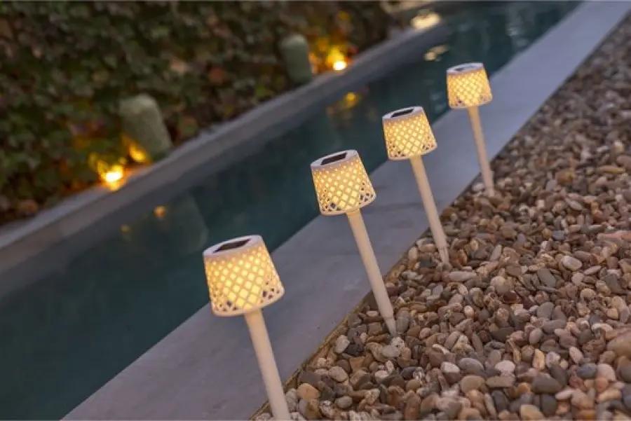 New Garden Gretita Solar Tuinlamp met Spike, 4 stuks wit