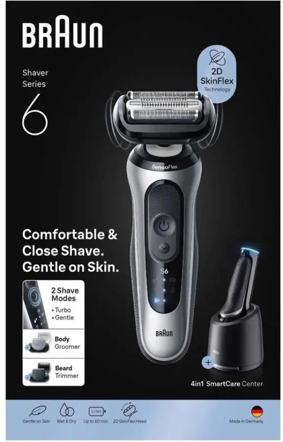 Met het Braun Series 6 62-S7650cc scheerapparaat geniet je van een strakke en comfortabele scheerbeurt. Het apparaat is uitgevoerd in stijlvol zilver en werkt draadloos op een krachtige Lithium-Ion accu. Dit zorgt voor langdurige prestaties zonder gedoe met snoeren.