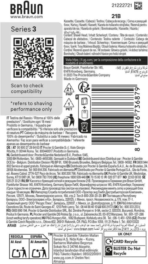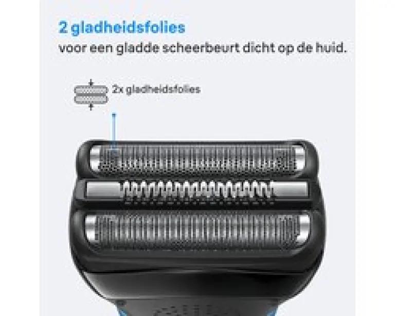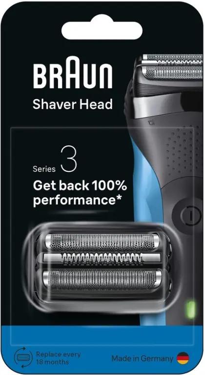 Het gemiddelde Braun scheerapparaat snijdt 6 miljoen haren elke 18 maanden. Dit betekent dat de scheerkop geleidelijk zal slijten en je scheerbeurt minder nauwkeurig en comfortabel kan worden. Daarom raadt Braun aan om elke 18 maanden de folie en het snijblok van je scheerapparaat te vervangen om je scheerapparaat weer in topconditie te krijgen. Zorg voor je scheerapparaat, en het zal voor jou zorgen. De doos bevat: 1 X ORIGINELE vervangingskop