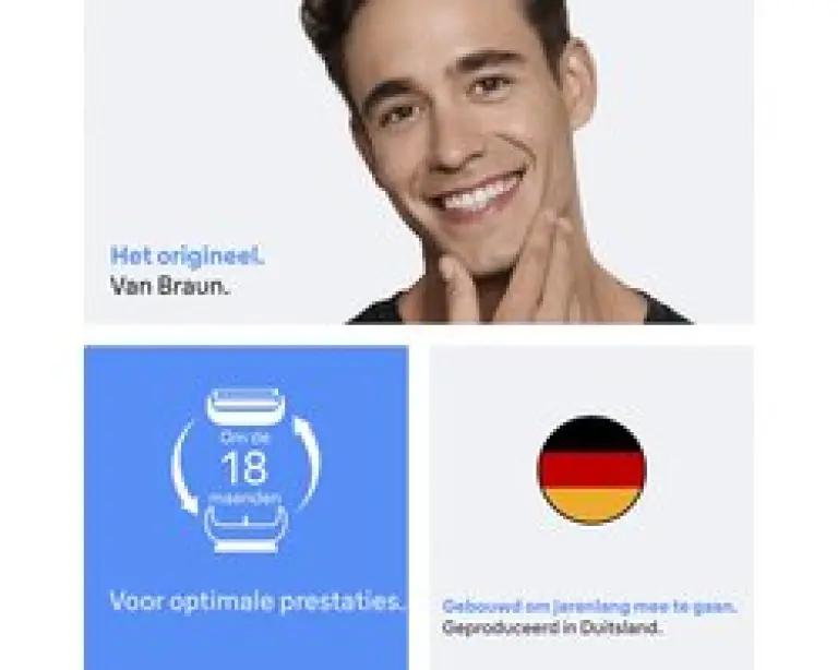 De originele scheerkop van Braun: Gemaakt in Duitsland. Gebruik alleen originele Braun vervangingskoppen om schade aan je scheerapparaat te voorkomen