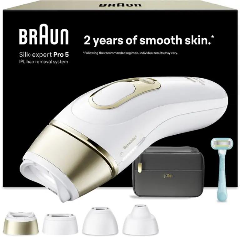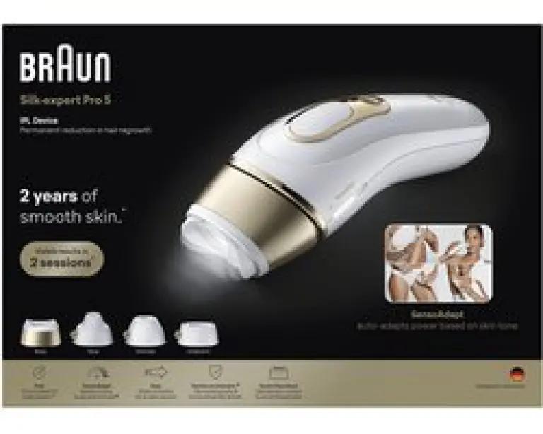 De Silk·expert Pro 5 is de snelste IPL van Braun en laat je al zichtbare resultaten zien vanaf de tweede behandeling*. Een volledige sessie voor het hele lichaam duurt slechts 10 minuten**, wat betekent dat je met slechts 2 sessies per maand binnen 3 maanden*** een gladde huid kunt bereiken. Je huid wordt tijdens de behandeling automatisch beschermd door de ingebouwde huidtintsensor die de flitsen aanpast aan jouw huidtype, ook in moeilijk zichtbare of gevoelige zones.