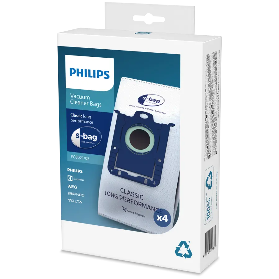 De FC8021/03 zakken passen op alle cilinderstofzuigers van Philips en de Electrolux Group, waaronder bekende series als PowerLife, Performer, SilentStar en nog veel meer. Met een inhoud van 3 liter bieden ze 15% meer capaciteit dan standaard zakken, waardoor je langer kunt schoonmaken zonder te wisselen. Het hygiënische sluitsysteem maakt het verwijderen van de zak makkelijk en schoon, zonder stofwolken.
