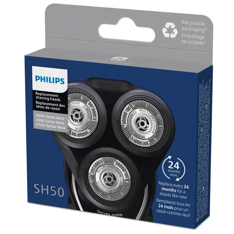 Met de Philips SH50/50 vervangende scheerhoofden zorg je dat je scheerapparaat weer als nieuw scheert. Na ongeveer 2 jaar gebruik scheren deze koppen maar liefst 9 miljoen haren van je gezicht. Door ze tijdig te vervangen, houd je het scheerresultaat scherp en voorkom je irritatie. Zo geniet je telkens weer van een gladde, comfortabele scheerbeurt zonder concessies.