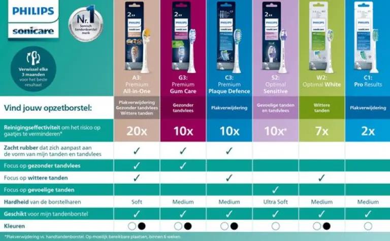 | Verpakkingsinhoud | 1 Elektrische tandenborstel, opzetborstels: 1 C3 Premium Plaque Defense, dockingstation, glazen oplader |