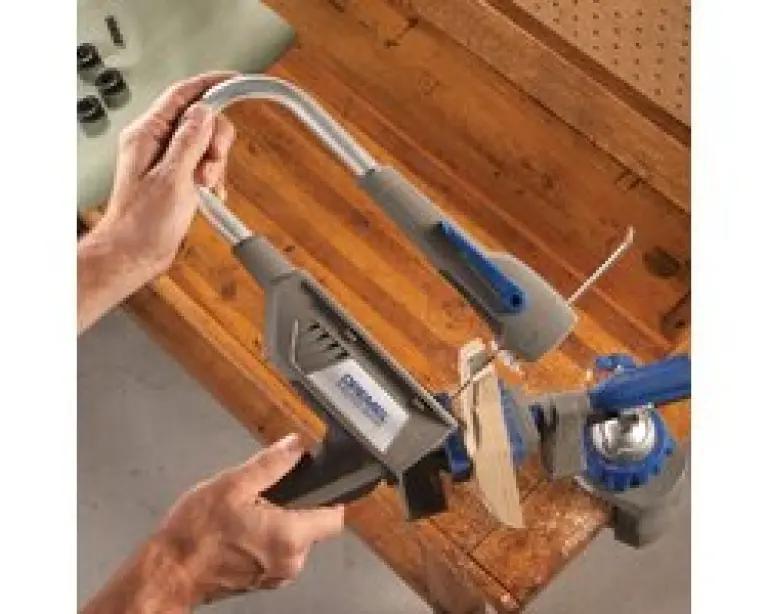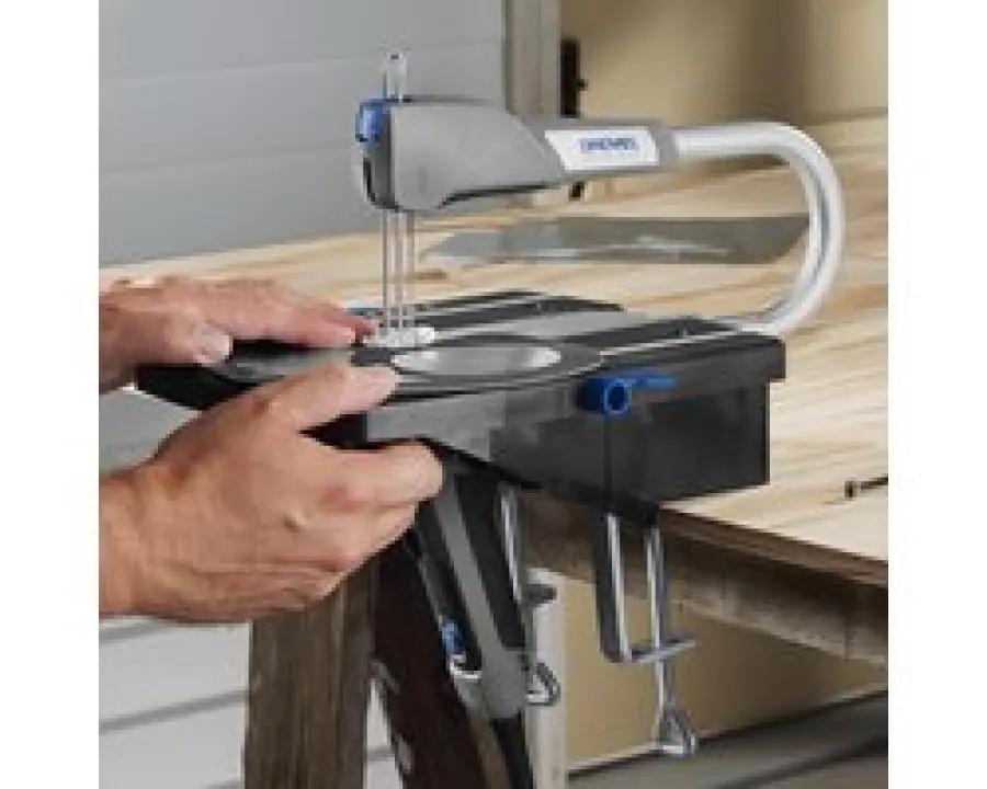 De Dremel Moto-Saw figuurzaag is een compacte en makkelijk te gebruiken elektrische zaag, speciaal ontworpen voor precisiewerk in verschillende materialen. Dankzij het afneembare gedeelte kun je de zaag niet alleen stationair gebruiken, maar ook handmatig meenemen voor zaagklussen op locatie. Het compacte formaat maakt het opbergen en opbouwen van deze figuurzaag erg eenvoudig.