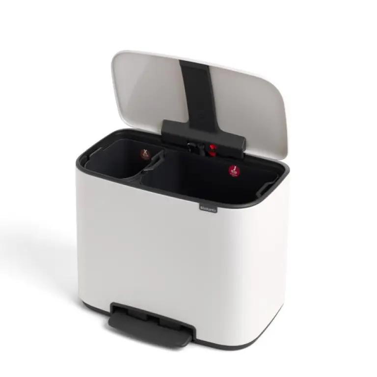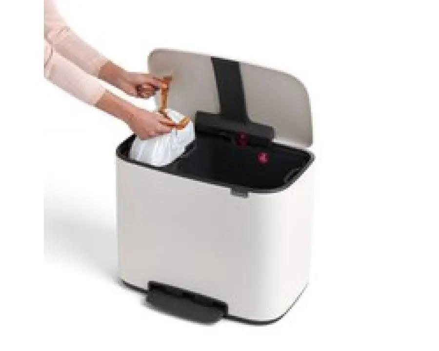 Op zoek naar een stijlvolle manier om je afval te scheiden? De Brabantia Bo Pedaalemmer met een inhoud van 11 + 23 liter biedt precies wat je zoekt. Met twee aparte vakken kun je eenvoudig verschillende soorten afval gescheiden houden. Dankzij het strakke ontwerp past deze afvalbak perfect tegen een muur of (keuken)kast, waardoor je kostbare ruimte bespaart.
