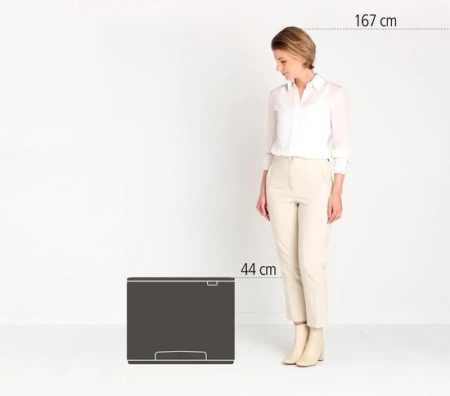 De prullenbak wordt geleverd inclusief een proefverpakking Brabantia PerfectFit afvalzakken (codes J en X), die perfect passen en onzichtbaar zijn aan te brengen. De grote opening maakt het weggooien van afval makkelijk en zonder knoeien. Bovendien is de deksel reukdicht, wat zorgt voor een frisse keukenomgeving.