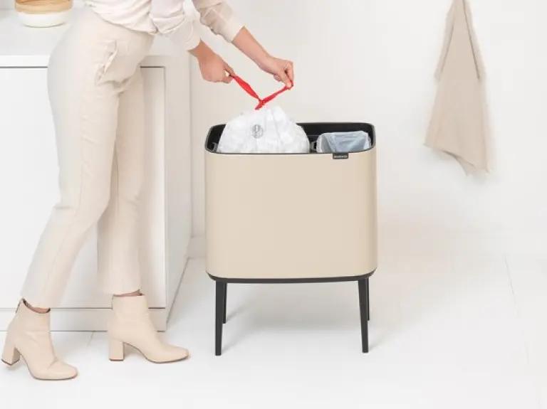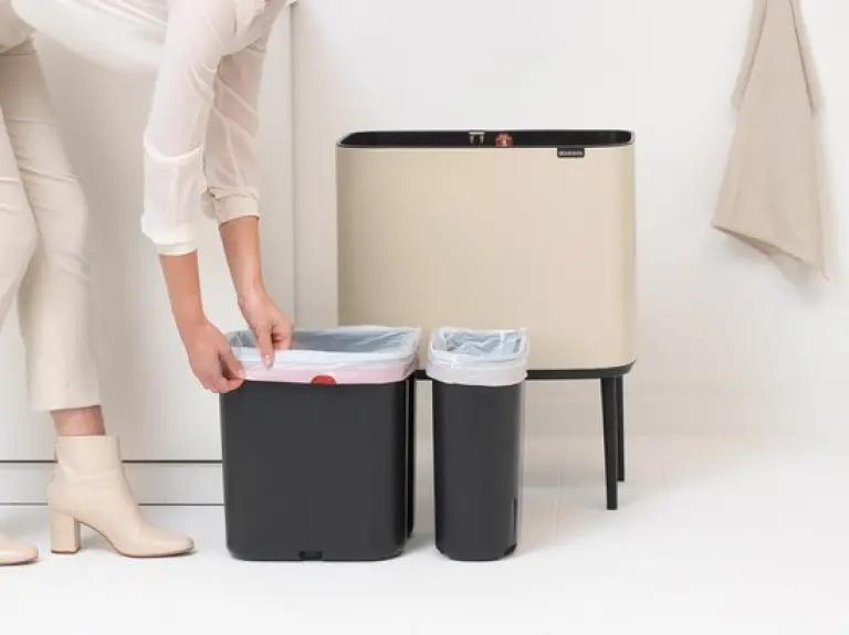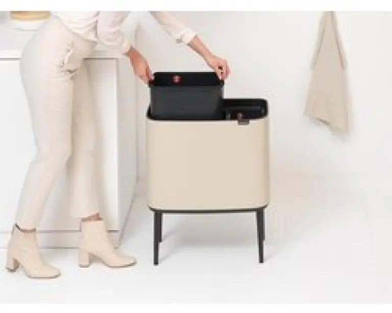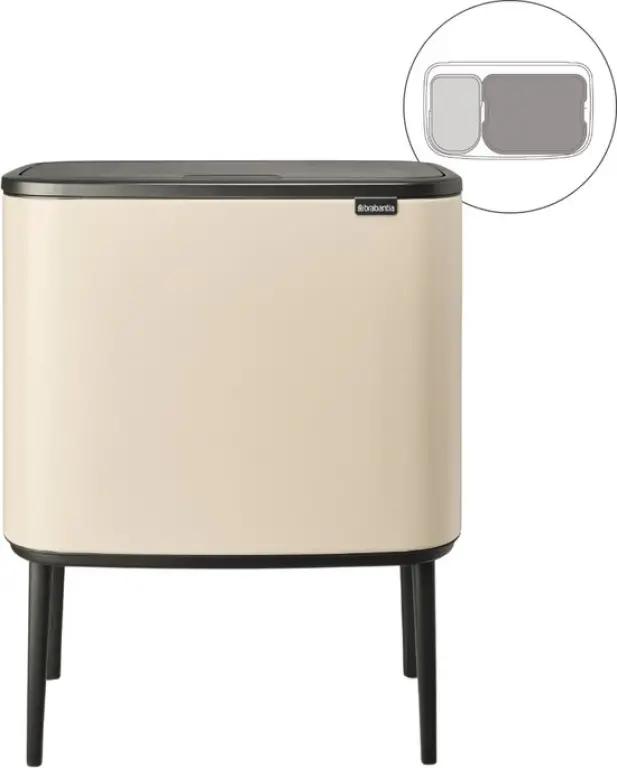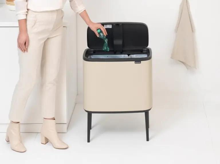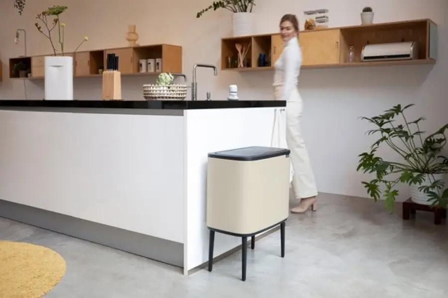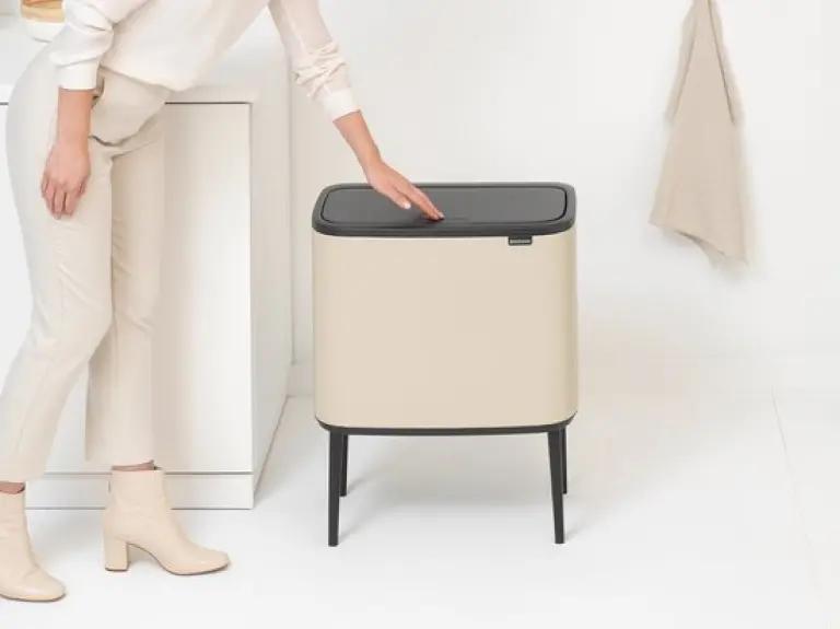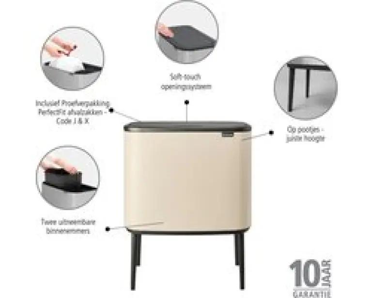 De Brabantia Bo Touch Bin afvalemmer in soft beige is jouw ideale partner voor afval scheiden thuis. Met een totaal volume van 34 liter, verdeeld over twee binnenemmers van 23 en 11 liter, kun je gemakkelijk twee soorten afval gescheiden houden. Dankzij het slimme ontwerp met een rechthoekige vorm past deze afvalemmer perfect tegen de muur, waardoor hij weinig ruimte inneemt en netjes oogt in jouw interieur.