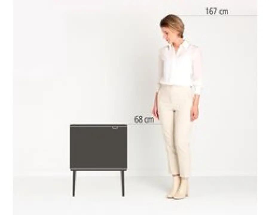 De Brabantia Bo Touch Bin staat stevig dankzij verstelbare antislip voetjes die voorkomen dat hij wegglijdt. De afvalemmer is verhoogd op pootjes, wat zorgt voor een comfortabele werkhoogte en minder bukken. Dit is niet alleen beter voor je rug, maar ook makkelijker in gebruik tijdens het schoonmaken. De strakke, glanzende stalen buitenkant maakt het geheel stijlvol en duurzaam.