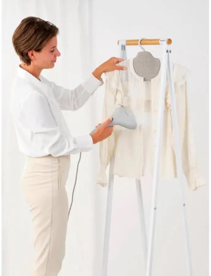 Met de Brabantia stoomkledinghanger in grey wordt stomen een stuk eenvoudiger. Deze kledinghanger is speciaal ontworpen om het stomen met handstomers makkelijker en sneller te maken, vooral bij lastige plekken zoals kragen en schouders. Zo krijg je moeiteloos je kleding kreukvrij zonder te strijken.
