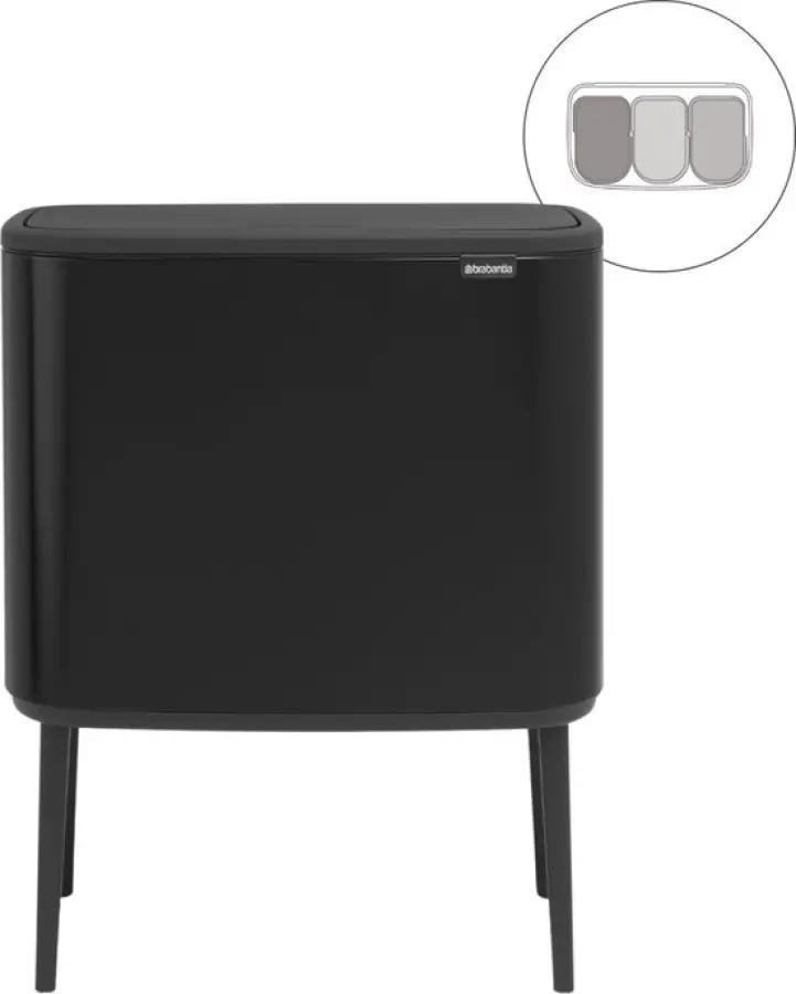 De Brabantia 316067 Touchprullenbak is de perfecte keuze als je op zoek bent naar een strakke en functionele oplossing voor afvalscheiding. Met zijn drie ruime vakken van elk 11 liter biedt deze prullenbak een totaalvolume van 33 liter, ideaal om verschillende soorten afval netjes gescheiden te houden. Het design is rechthoekig en uitgevoerd in een moderne matte zwarte kleur, waardoor hij stijlvol in vrijwel elk interieur past.