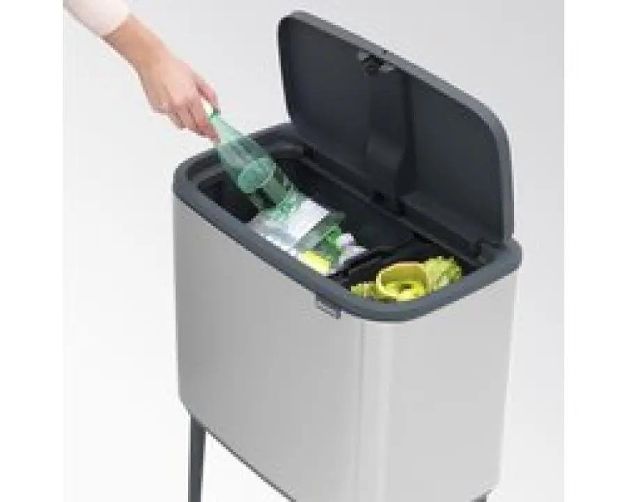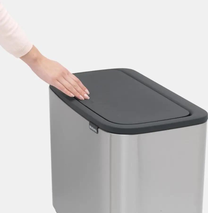 Op zoek naar een mooie en handige vuilnisbak om afval te scheiden? De Brabantia Bo Touch Bin is jouw perfecte partner. Met een inhoud van 23 + 11 liter verdeeld over twee vakken scheid je eenvoudig je afval. De prullenbak heeft een strakke, rechthoekige vorm en past daardoor perfect tegen de muur. Zo bespaar je ruimte en houd je je keuken netjes en opgeruimd.