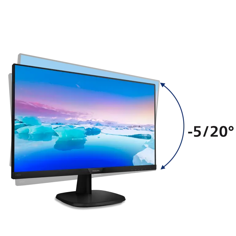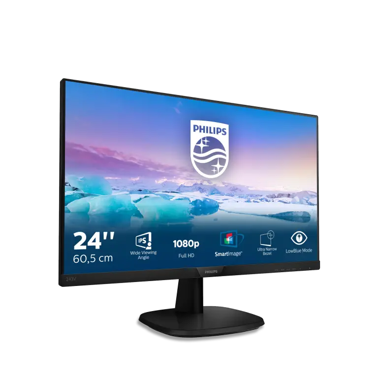 De 243V7QJABF/00 beschikt over een complete set aansluitingen: HDMI, DisplayPort en VGA. Zo sluit je eenvoudig verschillende apparaten aan, van laptops tot mediaspelers. De monitor heeft een strak ontwerp met dunne schermranden, wat hem modern en stijlvol maakt op je bureau.