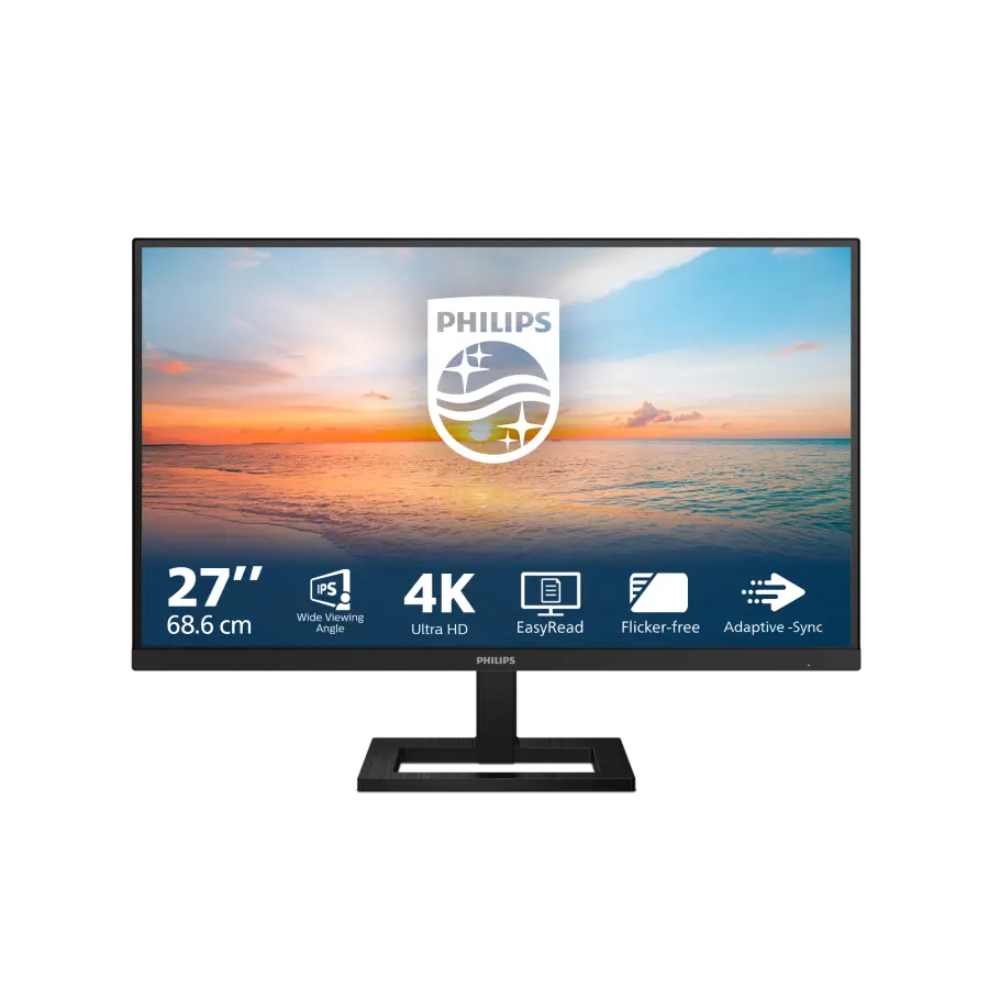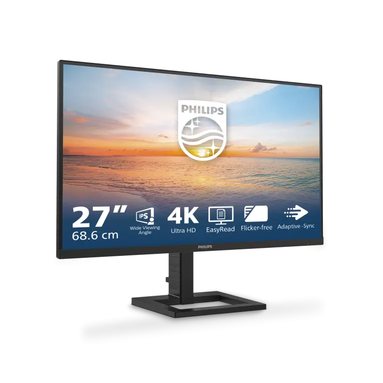 Met de Philips 27E1N1900AE/00 geniet je van een prachtig 27 inch (68,6 cm) LCD IPS-scherm dat beelden weergeeft in een haarscherpe 4K Ultra HD resolutie van 3840 x 2160 pixels. Dit betekent dat je elk detail kristalhelder ziet, of je nu werkt, filmpjes kijkt of games speelt. Het IPS-paneel zorgt bovendien voor brede kijkhoeken van 178 graden, zodat de kleuren altijd levensecht blijven, ook als je niet precies recht voor het scherm zit.