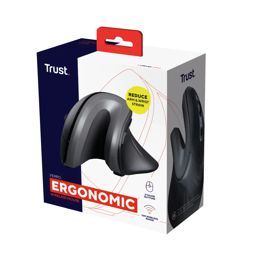 De Trust Verro is speciaal ontworpen voor rechtshandige gebruikers die comfort belangrijk vinden. Dankzij het verticale ontwerp belast deze muis je arm en pols minder, waardoor je urenlang comfortabel kunt werken zonder klachten. De vorm sluit perfect aan bij de natuurlijke houding van je hand.